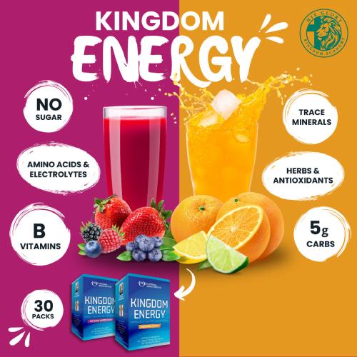Fuel your day with Kingdom Energy—a powerful, sugar-free energy stick infused with B vitamins, electrolytes, trace minerals, amino acids, herbs, antioxidants, and a caffeine pterostilbene cocrystal for sustained energy release. This refreshing formulation converts ordinary water into a high-performance drink to support mental clarity, stamina, and vitality.